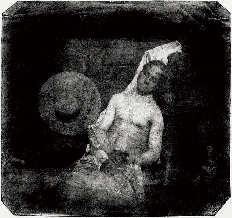 The corpse which you see here is that of M. Bayard, inventor of the process that has just been shown to you. As far as I know this indefatigable experimenter has been occupied for about three years with his discovery. The Government which has been only too generous to Monsieur Daguerre, has said it can do nothing for Monsieur Bayard, and the poor wretch has drowned himself. Oh the vagaries of human life….! … He has been at the morgue for several days, and no-one has recognized or claimed him. Ladies and gentlemen, you’d better pass along for fear of offending your sense of smell, for as you can observe, the face and hands of the gentleman are beginning to decay.